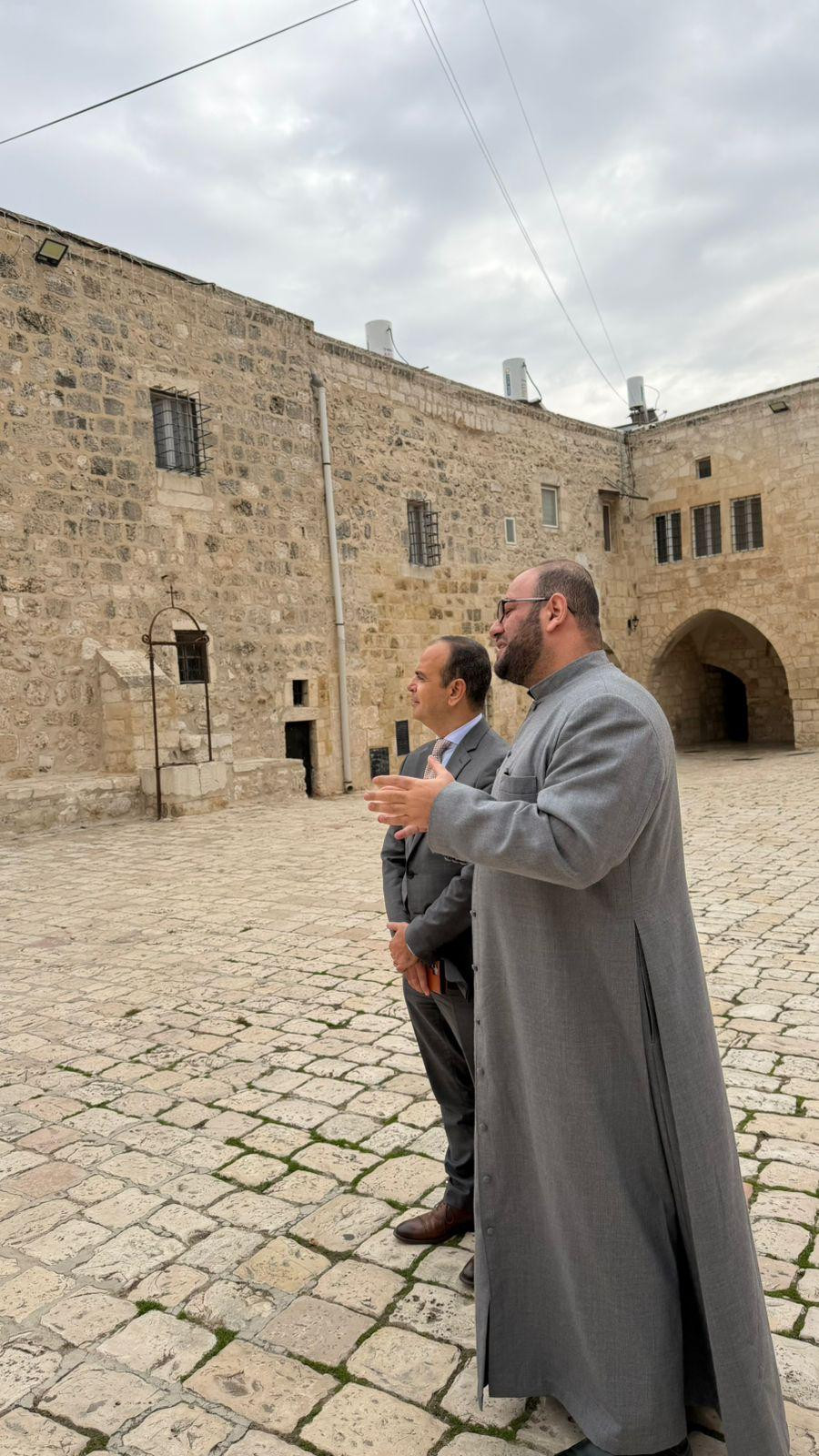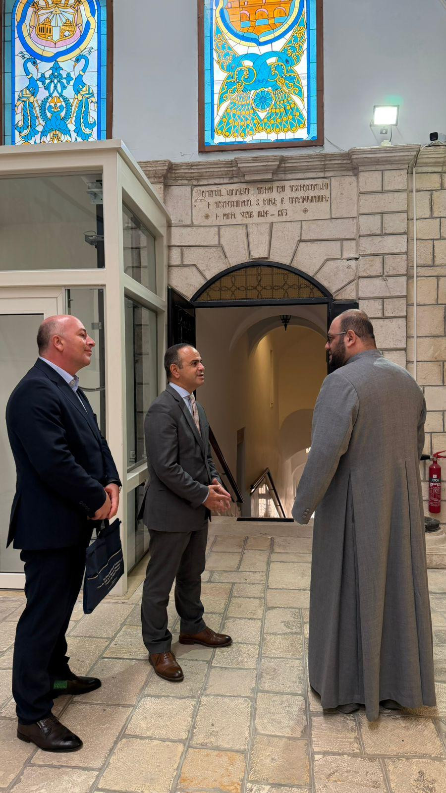 Այցի ընթացքում գլխավոր հանձնակատարը շրջայց է կատարել Պատրիարքարանում, ինչպես նաև առանձնազրույց է ունեցել Երուսաղեմի Հայոց Պատրիարք Նուրհան արքեպիսկոպոս Մանուկյանի հետ։ Հանդիպման ընթացքում քննարկվել են տեղի հայ համայնքին և Պատրիարքարանի գործունեությանը վերաբերող հարցերի լայն շրջանակ։
