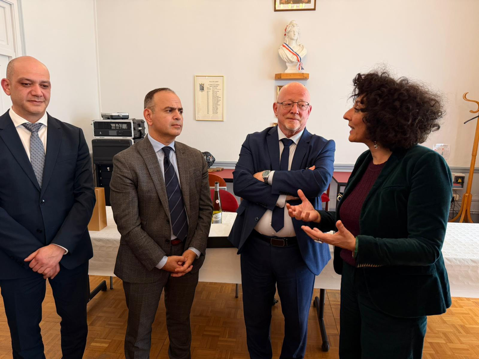 Այնուհետև Ժոֆի քաղաքապետարանում կայացել է աշխատանքային հանդիպում, որին մասնակցել են Ժոֆի քաղաքապետ Անդրե Կորզանին, Վալ դը Բրիե շրջանի պրեֆեկտ Էլեն Ժերունիմին, Մյուրթ-է-Մոզելի դեպարտամենտի խորհրդի նախագահ Շեյնեսս Խիրունին, «Գրանդ Էսթի հայկական սփյուռք» ասոցիացիայի նախագահ Անդրե Ներսիեն, փոխնախագահներ Սոնյա Բալայանը և Լիանա Բաբայանը, ինչպես նաև հայ համայնքի և քաղաքապետարանի ներկայացուցիչներ։
